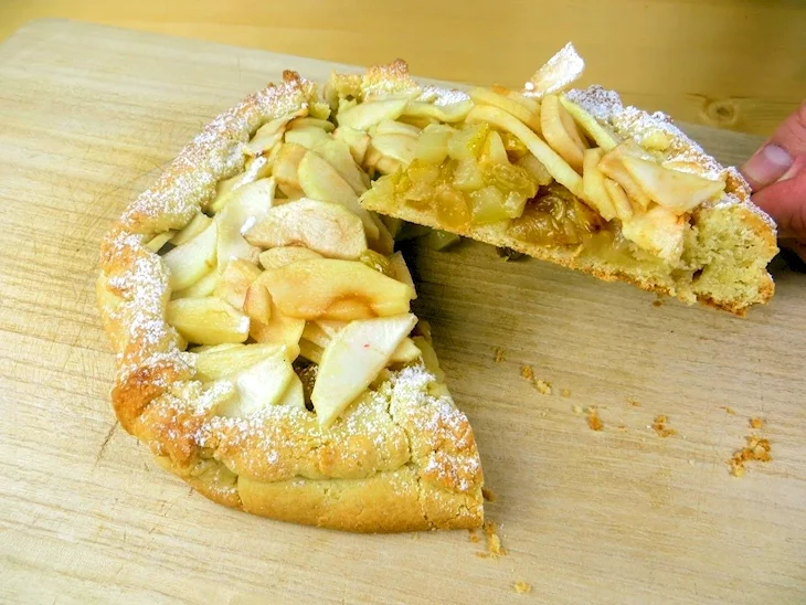 - Начинка: Очистить и нарезать яблоки и груши тонкими ломтиками. В миске смешать нарезанные фрукты с сахаром, лимонным соком, корицей и мускатным орехом.